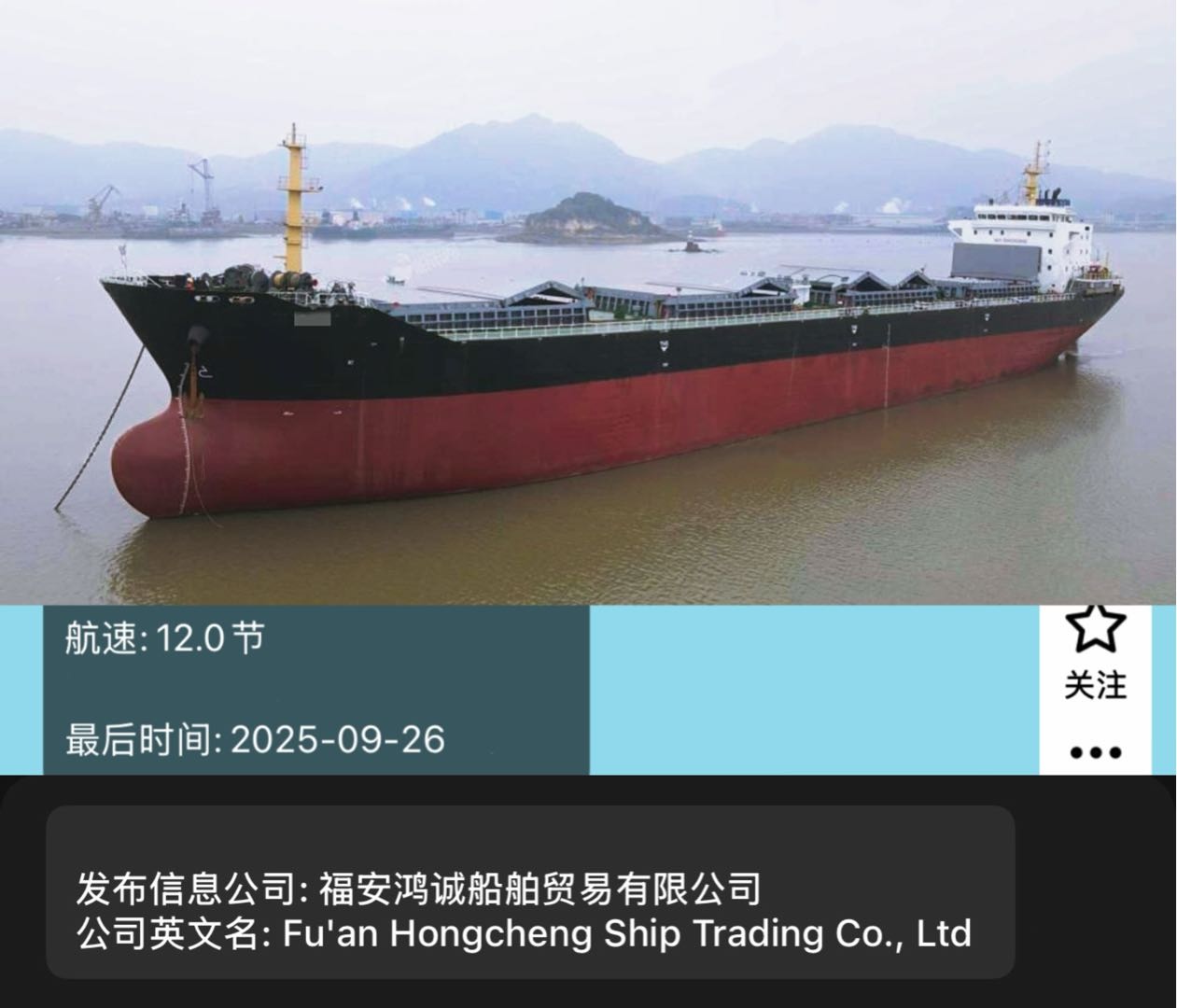 - 出售:13400吨散货船 建造年份:2010年 建造地址:中国